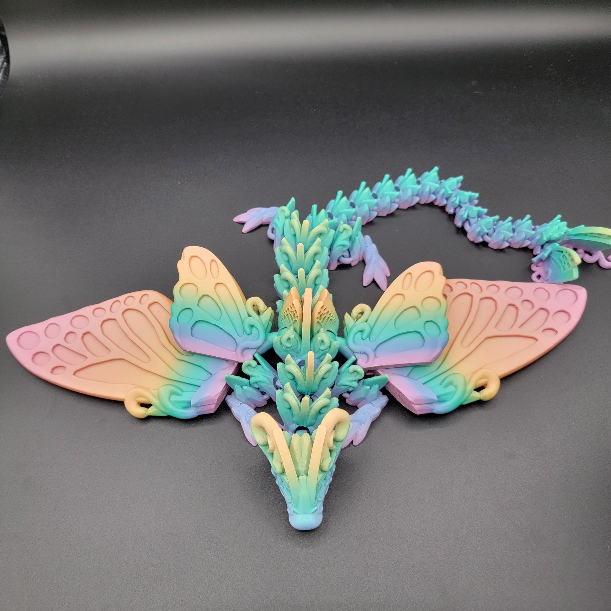 At about 18.25 inches long, this articulated dragon is both elegant and interactive. Color customization is available upon request.