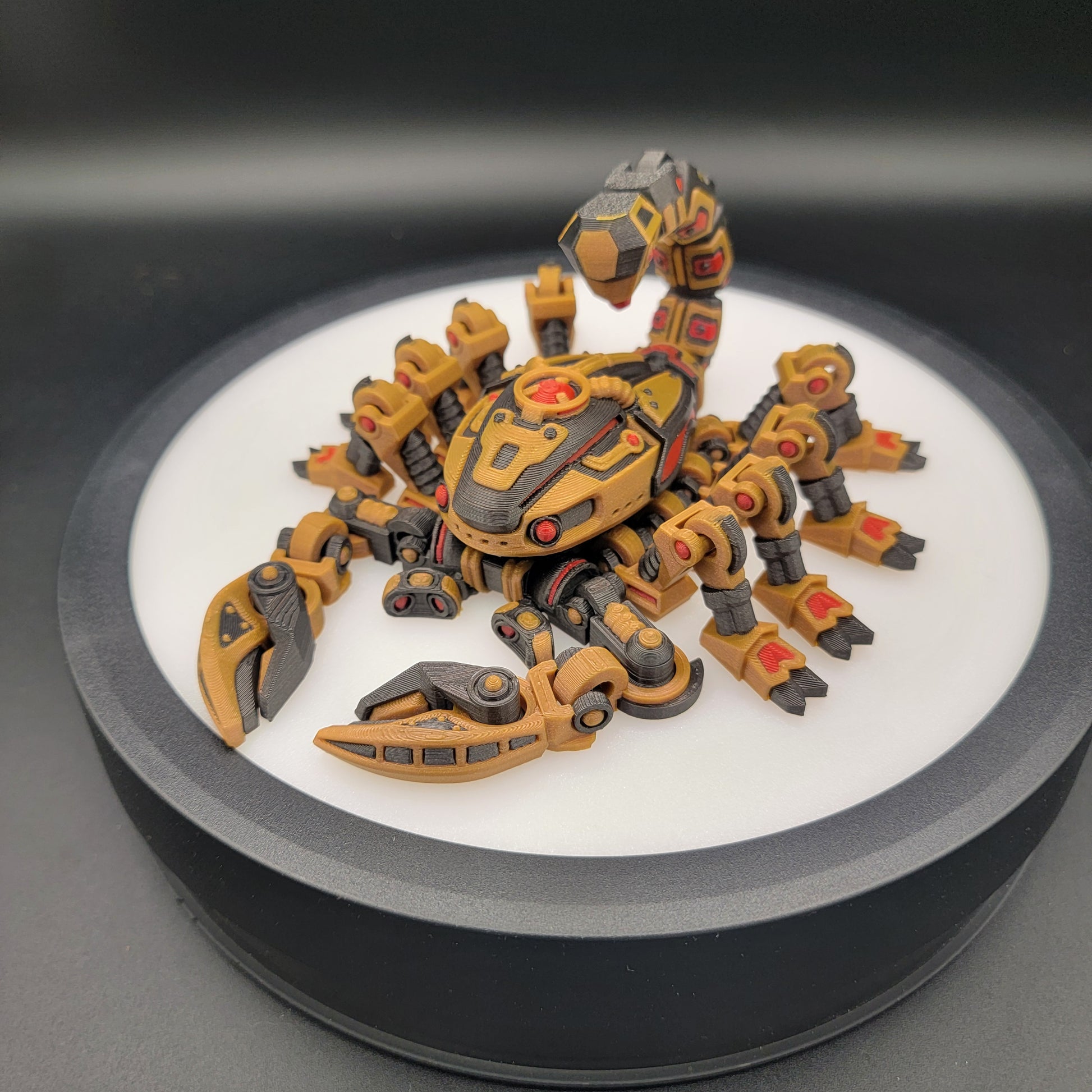 We typically print this model in yellow, black, and red for a classic high-contrast look, but this design is perfect for color customization. You’re welcome to request your own color combination and create a cyber scorpion that’s uniquely yours.