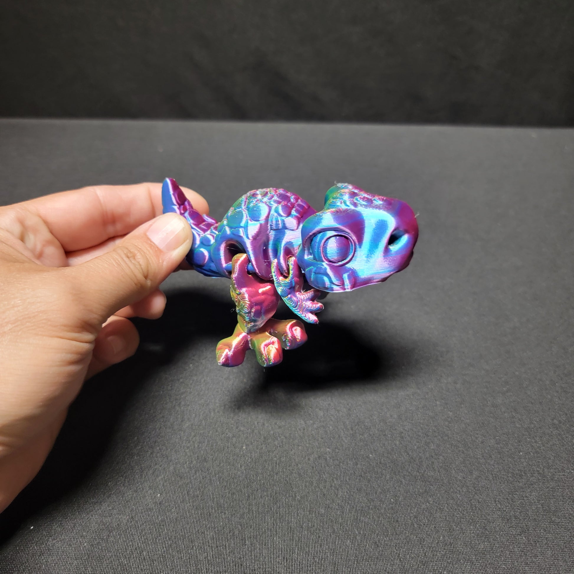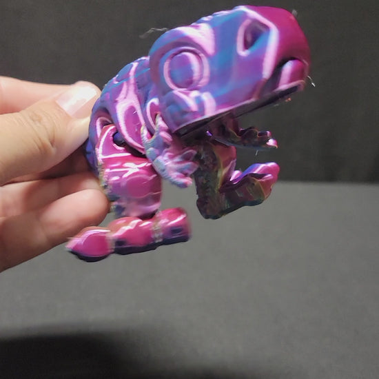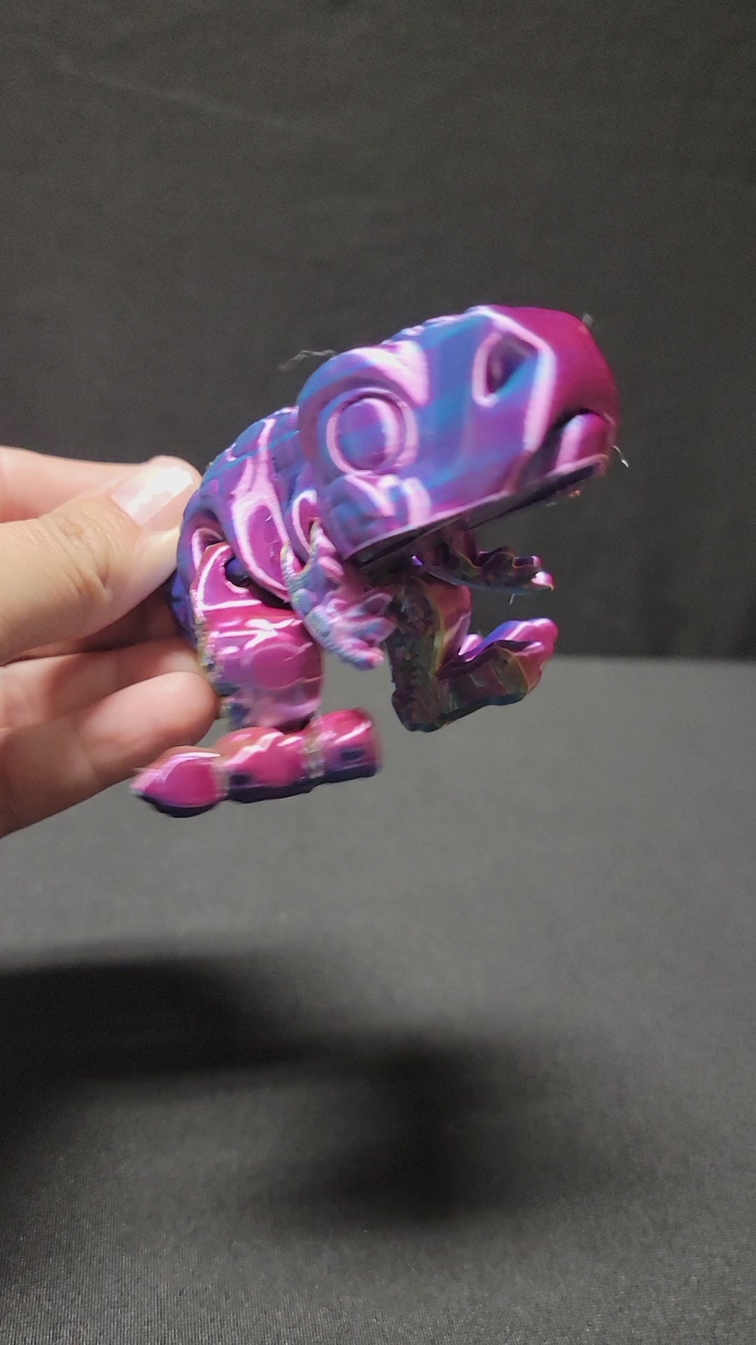 It may be much tinier than the large theropod from the Late Jurassic Period, but is has a large bite. It will show you all its teeth any time you pull on its tail.