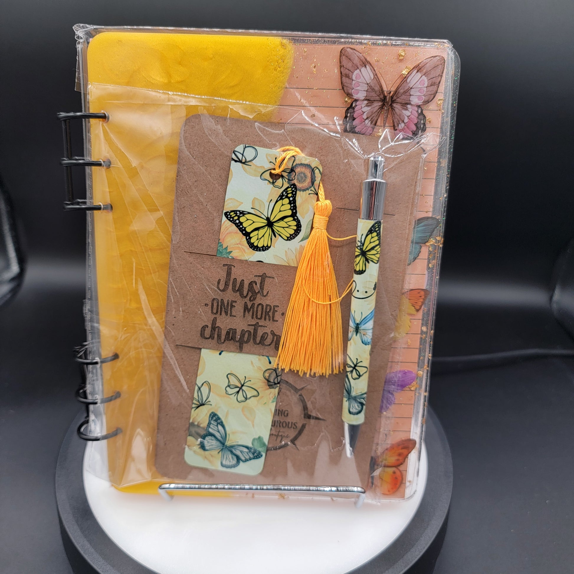 Unleash your creativity with this stunning handmade resin journal set, complete with a bookmark and pen.