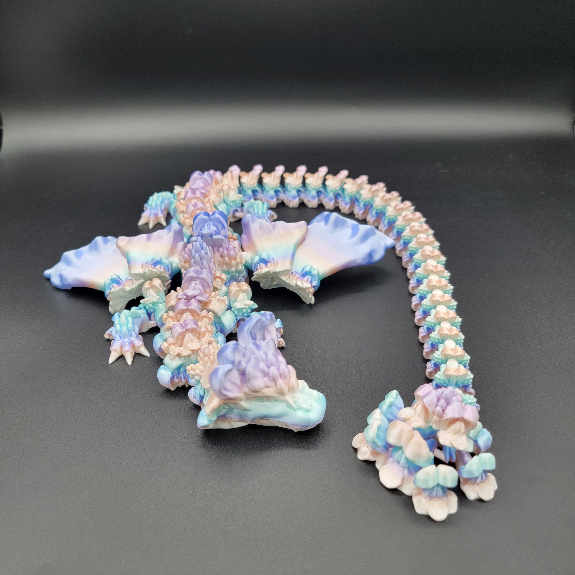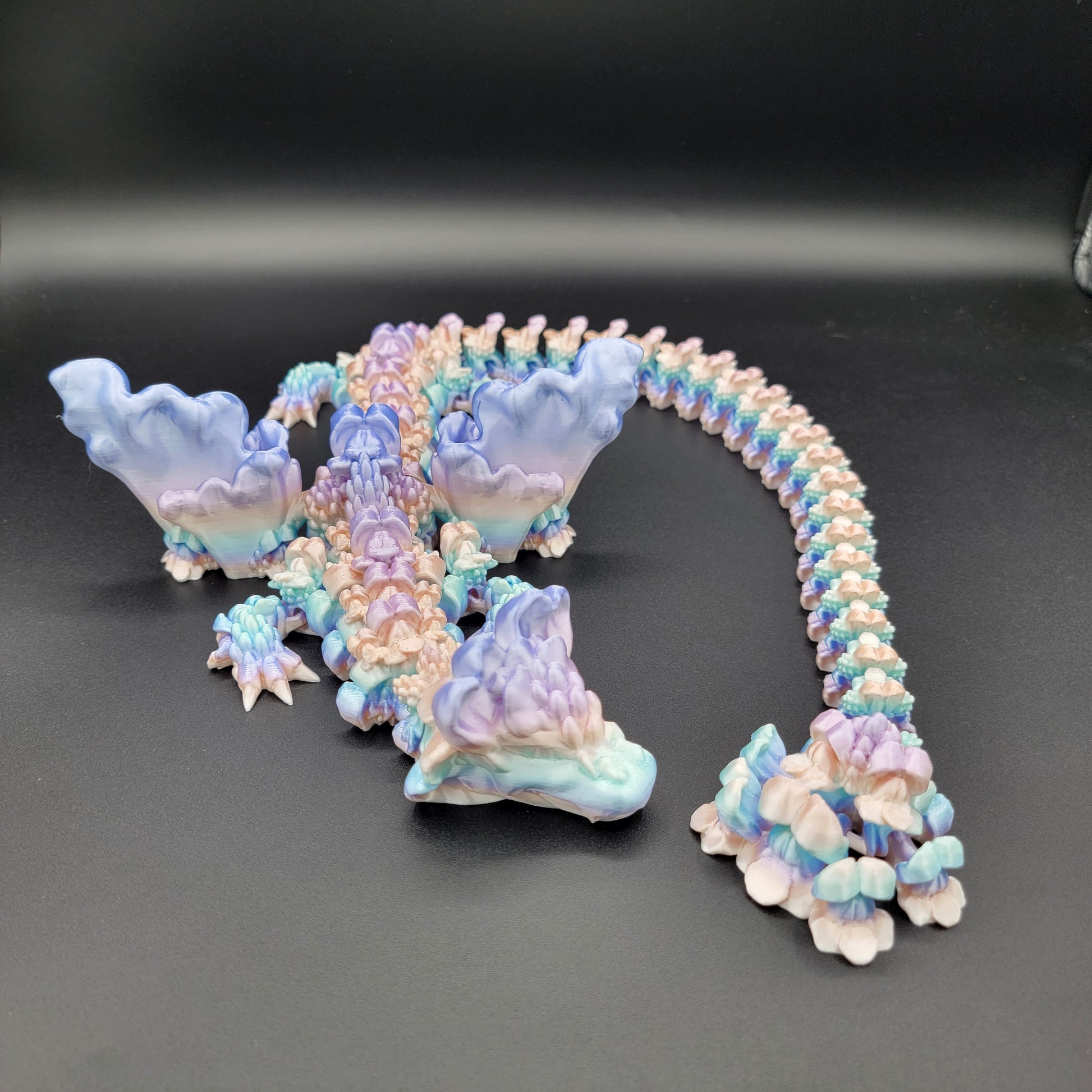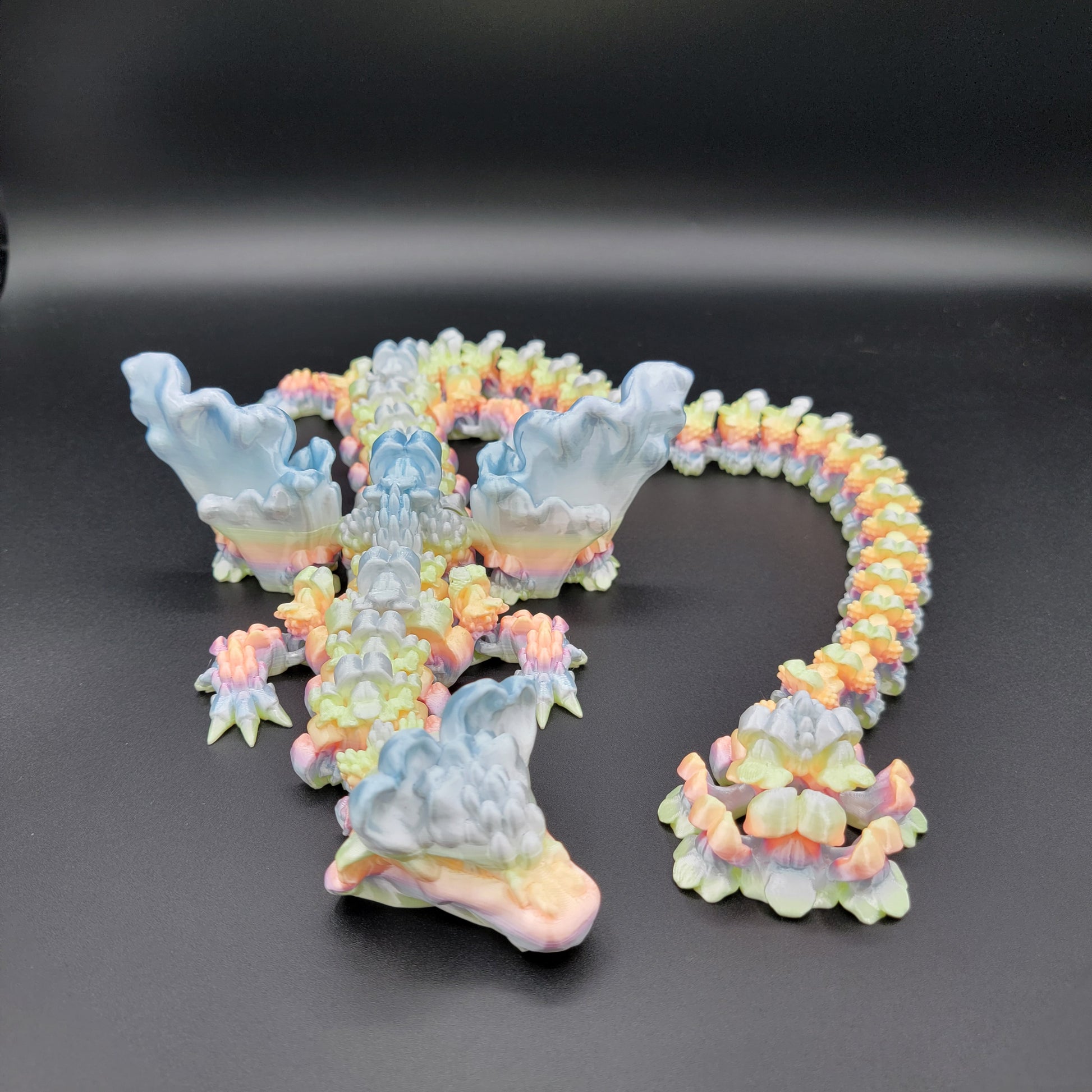 Measuring approximately 27 inches long, this articulated dragon is flexible, detailed, and perfect for display. We’re happy to share current color options or create one to match your preferences.