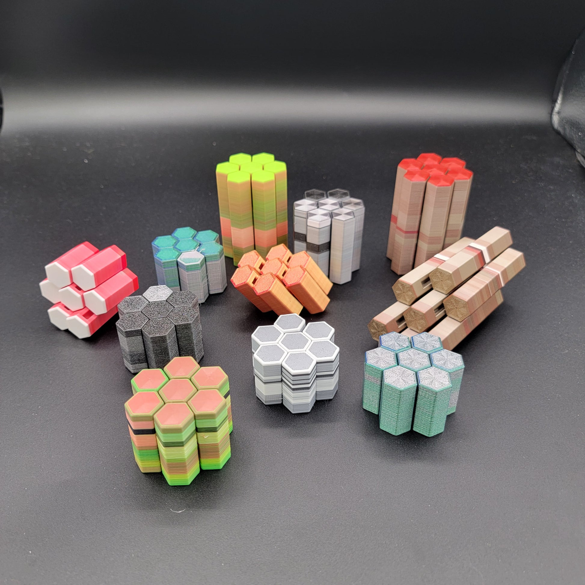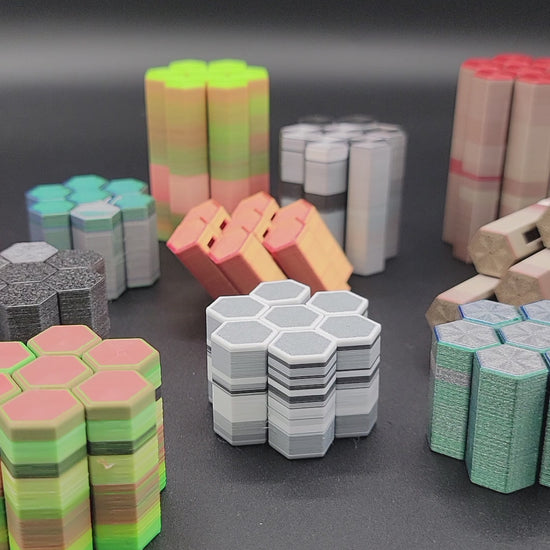 Just like our Infinity Cubes, we make these using filament from our precision prints and leftover remnants that would otherwise go to waste. That means every single fidget is completely unique with unexpected, one-of-a-kind color combinations.