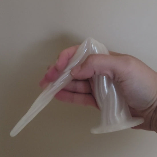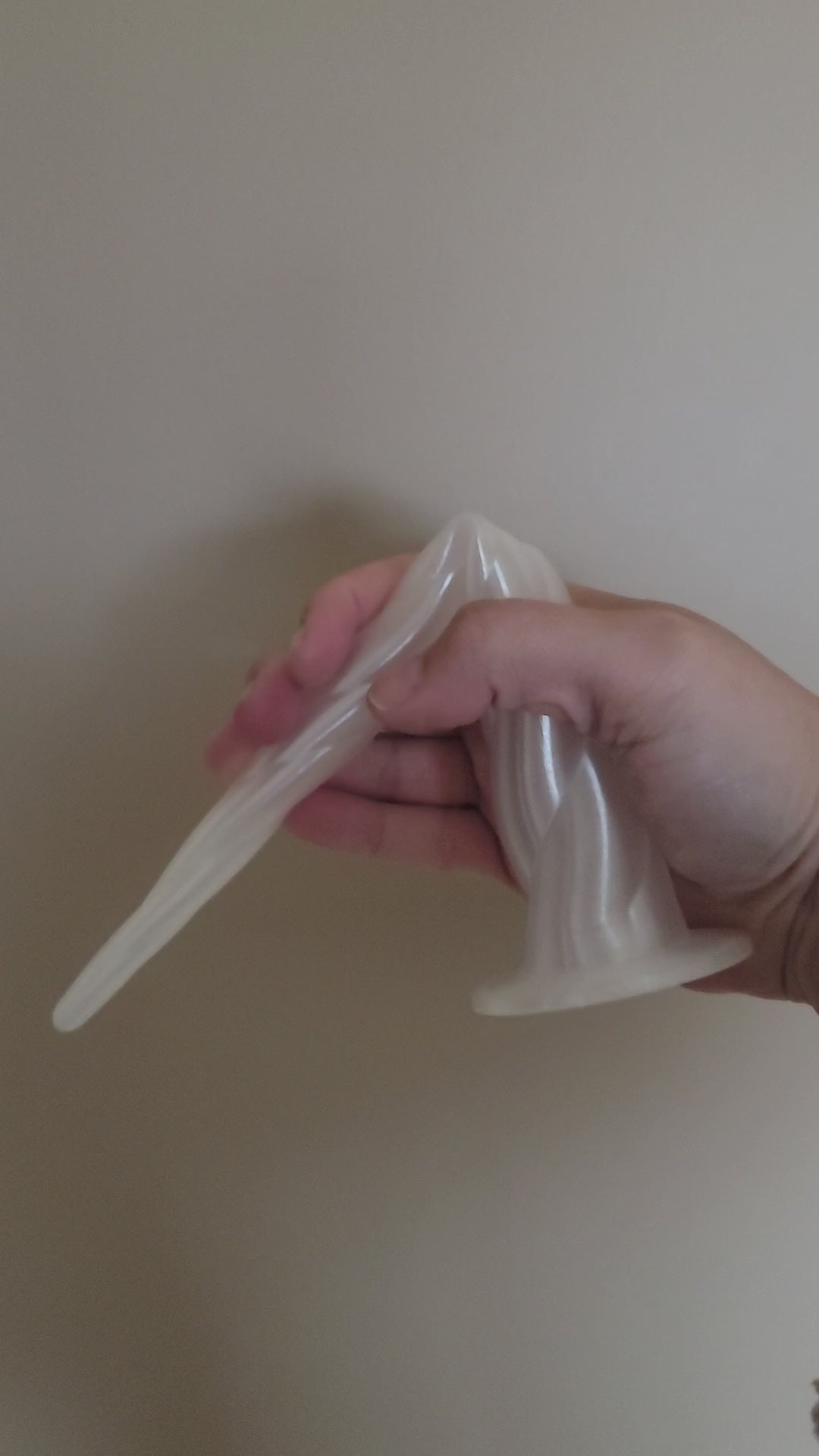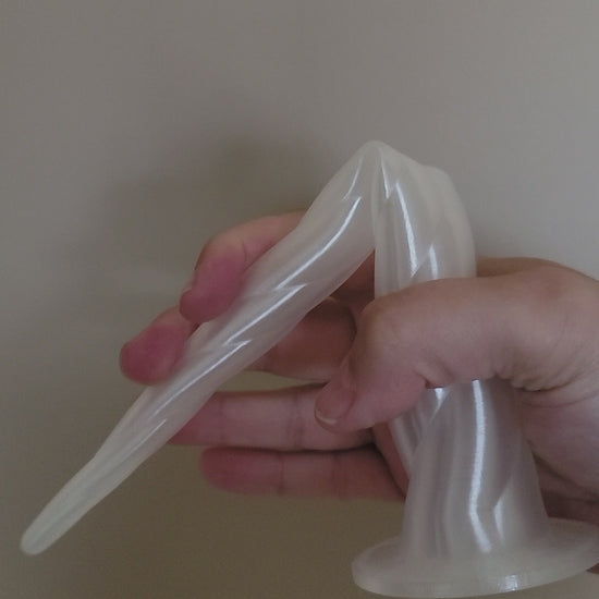 This 3D printed Unicorn Horn is made using flexible TPU filament, allowing it to bend rather than stay rigid when pressure is applied.